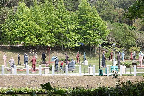 「慈湖紀念雕塑公園」所擺設的是來自於全台各地所拆除的國父、蔣公銅像,這些銅像有大、有小,有大家所熟析的全身、半身像,也有坐姿與騎馬的塑像,每一座銅像皆具其時代背景,每一座也都具有藝術價值。整個園區透用步道將所有銅像擺放位置串聯在一起,走在這個含有藝術氣息、庭院造景、及小橋流水的步道上,相當富有閒情逸致。