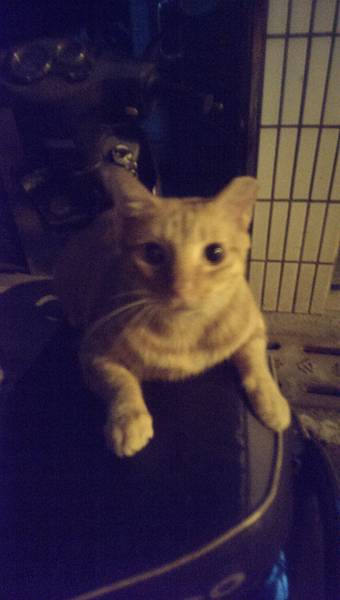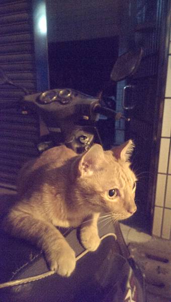 拍拍我摩托車的坐墊,他會輕輕的躍上我的坐墊