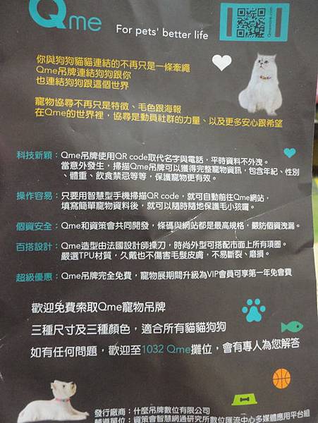 (畢竟這一切都是需要資源的,而且若不幸毛小孩走失就不只300了,請參考Qme 免費吊牌與加值服務)