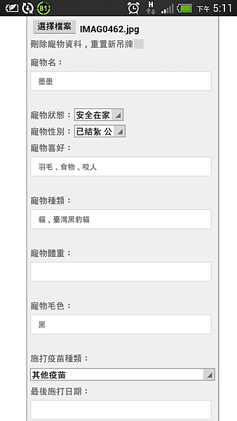 就會跳入這個畫面,請在這裡填寫寵物的資料
