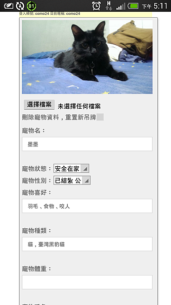 和上傳手機內的寵物照片(照片之後可以用電腦改)