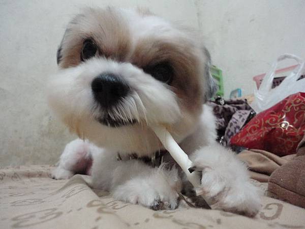 他咬著的食物就是不鬆口,你越跟他搶他就會越會咬著或是吞下去