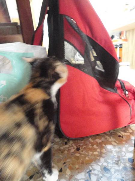 跑到墨墨的外出籠裡去了...