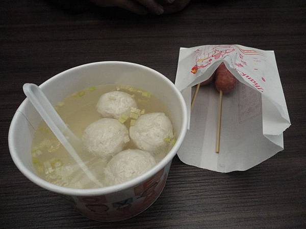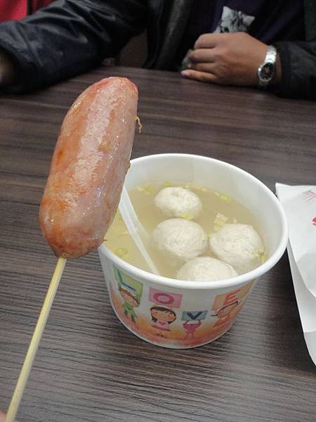 三樣一百,買了香腸和魚丸湯來嚐嚐