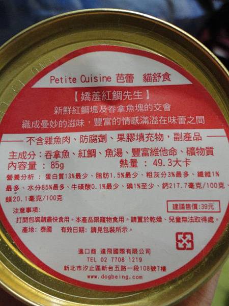 ※另外還有查到的是如包裝上寫的極簡單介紹:吞拿魚,紅鯛,魚湯,豐富維他命,礦物質。