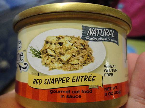 原料成分:吞拿魚片,紅鯛魚片,魚湯,葵花籽油,磷酸三鈣,瓜爾豆膠,硫酸鈣,愛爾蘭海藻,維生素E,維生素A,維生素D3,硫酸鋅,維他命B1,硫酸錳,核黃素,葉酸,維他命B6,銅複合氨基酸,鐵複合氨基酸