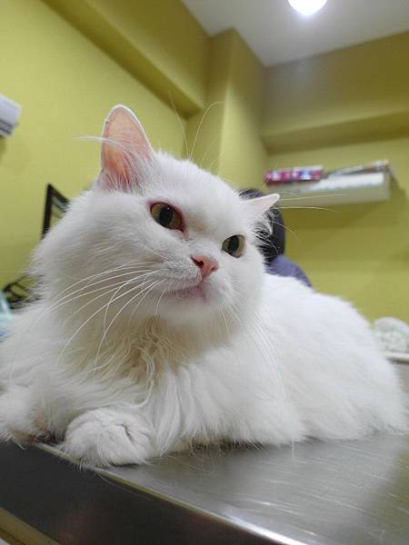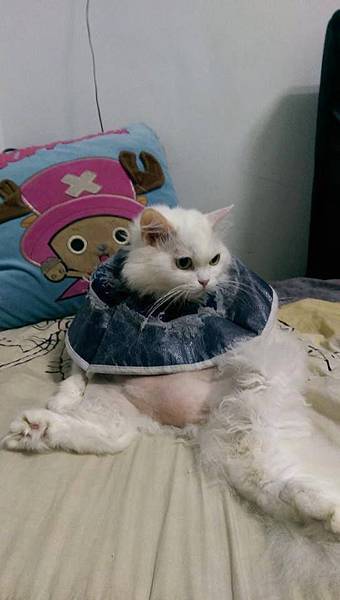 後來小雪的眼睛好了,耳朵也改善很多,外加可能戴頭套,肚子毛有比較長了XD