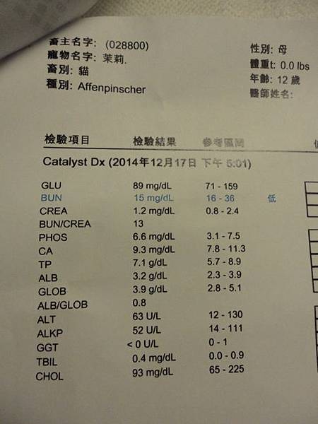但後來觀察精神食慾都好,就沒特別帶去抽血檢查了