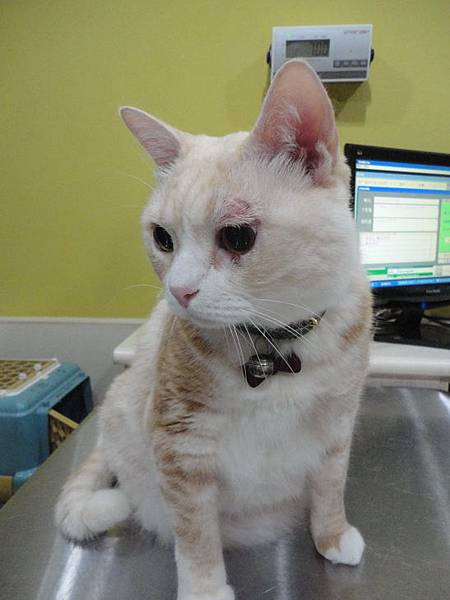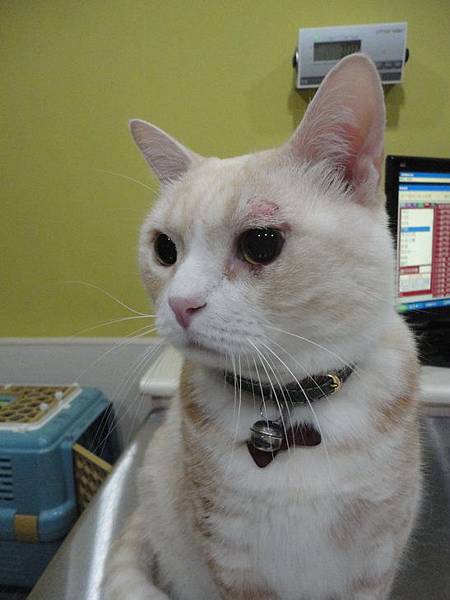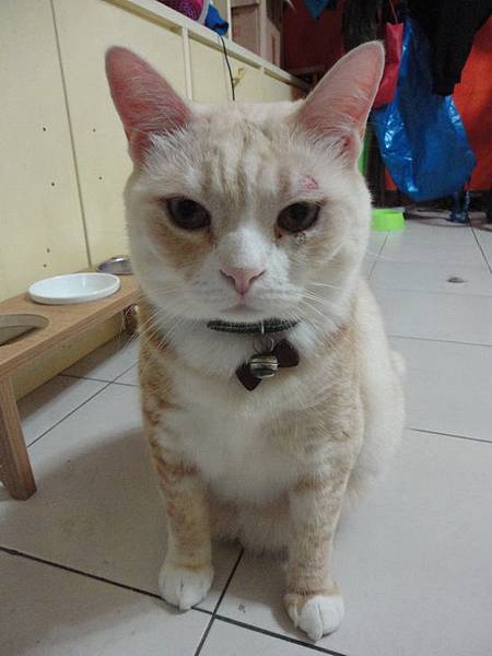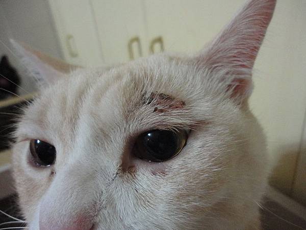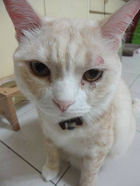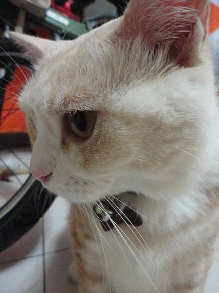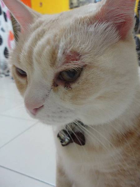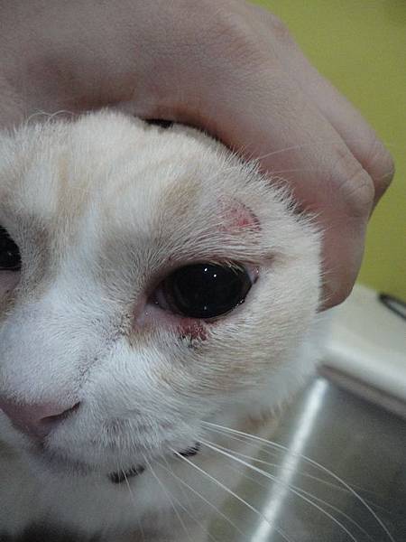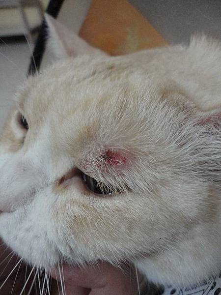 突然發現古錐左眼皮上方有點紅腫,以為是打架不小心弄受傷
