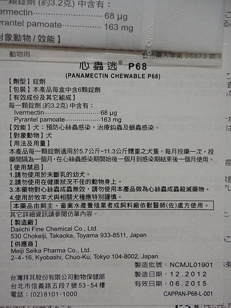 這次介紹的是犬心絲蟲預防藥的部分,如果已經罹患了心絲蟲的狗狗,請直接找醫生就診。