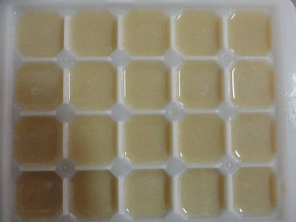 打均勻的HPW食譜平均裝入製冰盒中,放入冷凍備用
