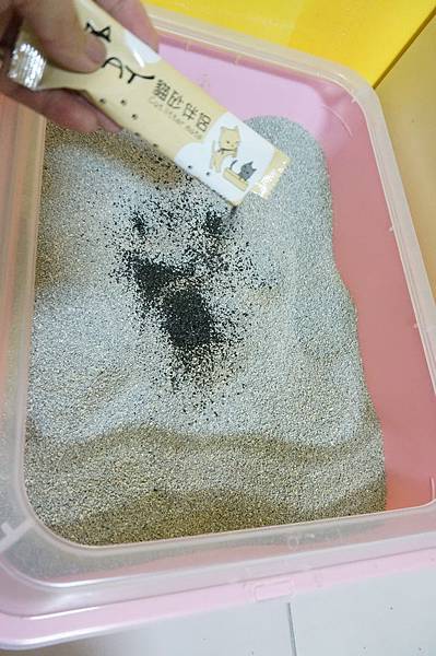 是說加在貓砂裡也不用過度擔心粉塵問題啦...因為貓砂的粉塵就會掩蓋掉除臭粉的粉了![]()
