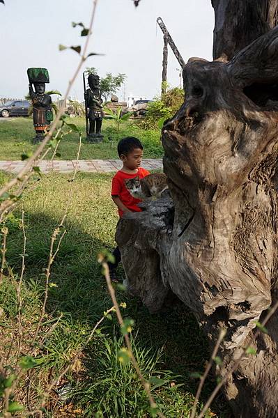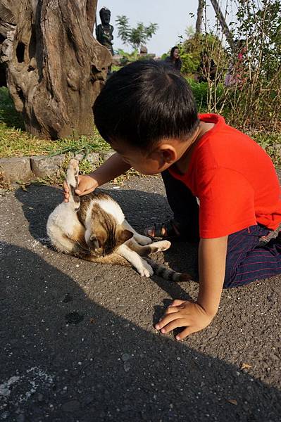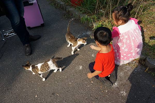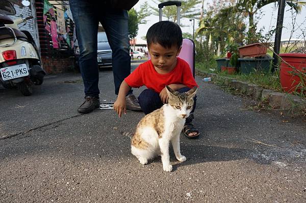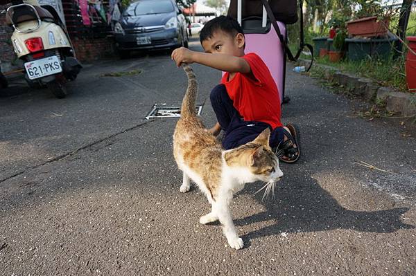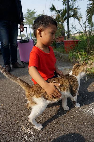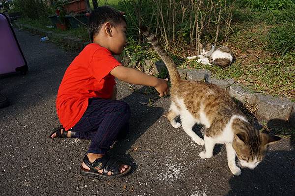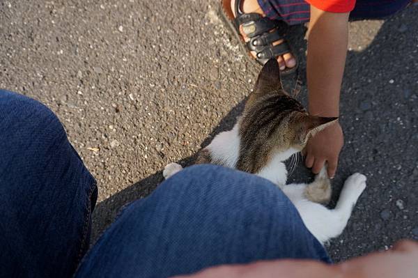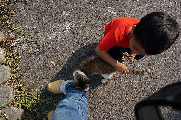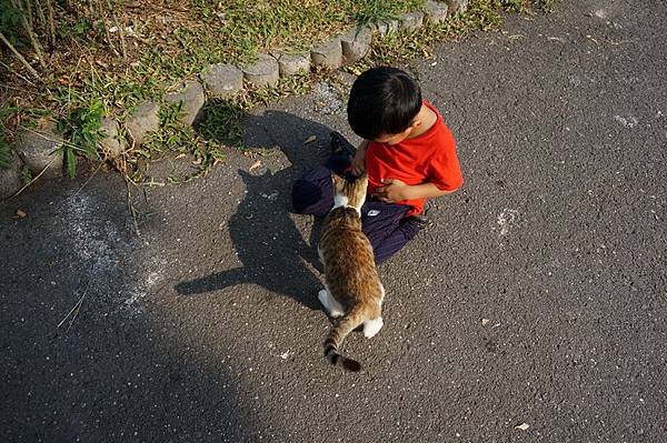 結果樹上這孩子就跑來跟我撒嬌,小朋友也跟著過來繼續摸(大概半好奇我在拍貓咪吧!)
