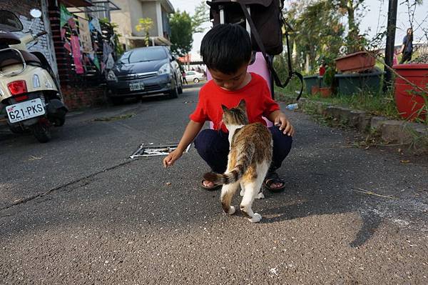 結果照片中這小朋友跑過來,阻止古錐拔摸貓咪