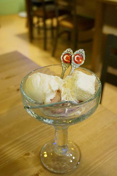 要把土耳其栗絲球撥開灑在冰淇淋上食用