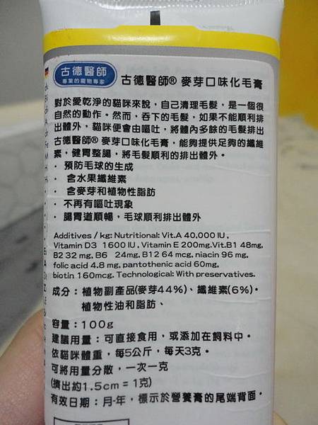 聊到彼此的貓都不愛吃化毛膏,於是客人很熱心的介紹我這款 古德醫師化毛膏