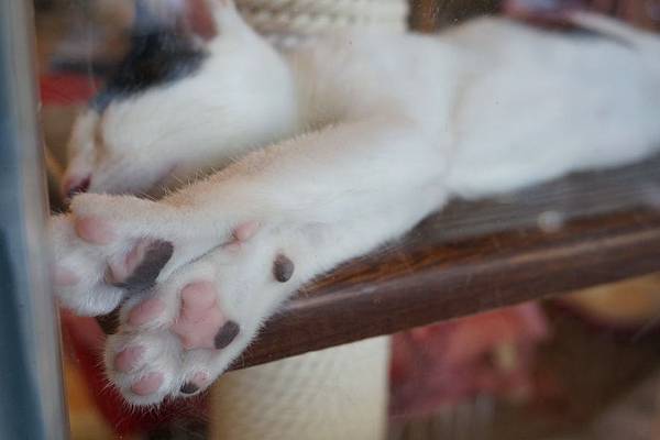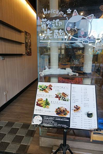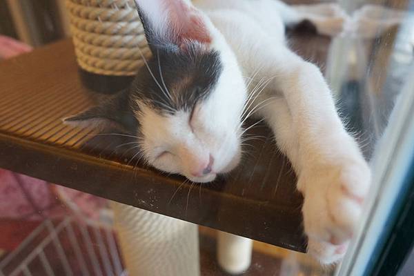進門前的認養櫥窗就有貓咪用超可愛睡姿迎接