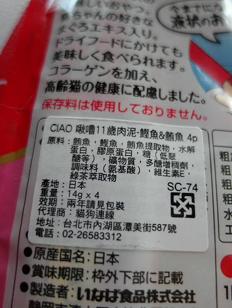 品名:CIAO 11歲肉泥鰹魚&鮪魚 SC-74 /零食