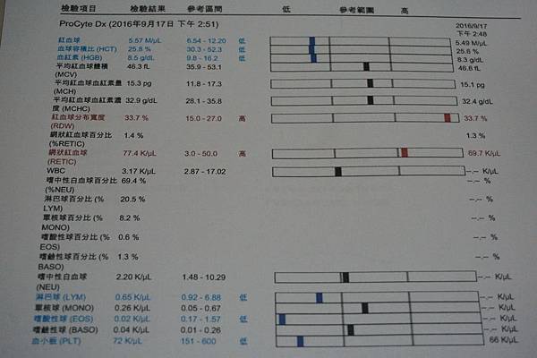 血容比(HCT)比上次好一點,從 24.8% 升到25.8%