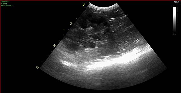 超音波底下只有一點點,幾乎是沒有尿沙