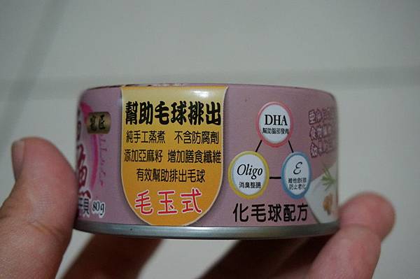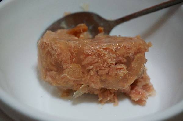 因為添加了亞麻子等等,罐頭質地比較鬆軟