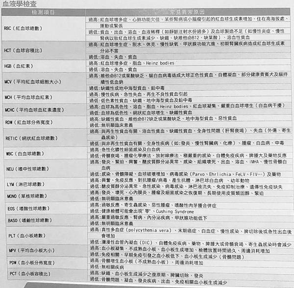 這部分獸醫都會知道依照儀器提供的標準值當參考