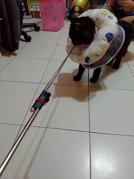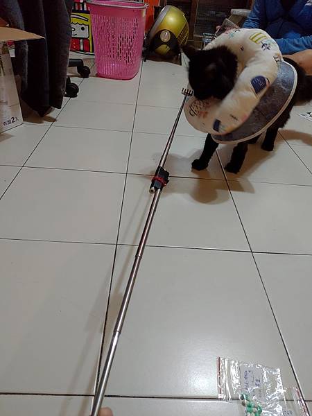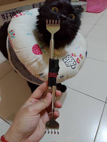 買了兩支伸縮不求人綁在一起,把藥藏在肉泥伸過去讓墨墨吃