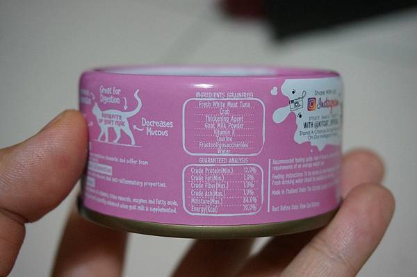 新鮮去骨鮪魚、螃蟹、增稠劑、山羊奶粉、水、維生素E、FOS(低聚果糖)、牛磺酸