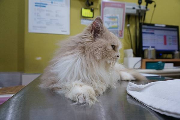 傳了照片給醫生看,因為除了吐之外精神還好,跟醫生確認過之後先不帶貓到醫院