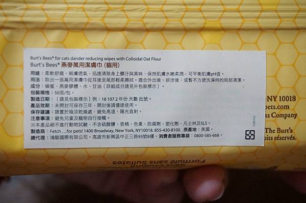 這篇介紹的是Burt's Bees 燕麥萬用潔膚巾(貓用)