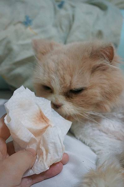 或是有點力氣到貓砂了,但尿的時候倒在貓砂裡(在之前也偶爾會倒在貓砂裡)