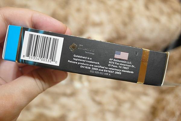 這是毛管家的美國專利 GOLDSHIELD(GS)奈米科技成份,不揮發,舔不掉也抓不掉(是說除非感情超好的貓狗才會去舔對方的耳朵啦