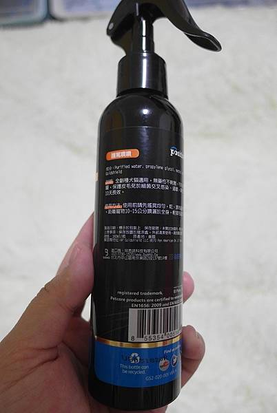 使用方法:使用前請先搖晃均勻,乾、濕毛髮狀態均可使用,距離寵物 10-15 公分噴灑於全身,輕揉毛髮均勻分佈。