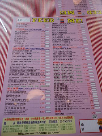 那份有幾樣菜是劃掉的,還是要以服務人員的單子為主喔~