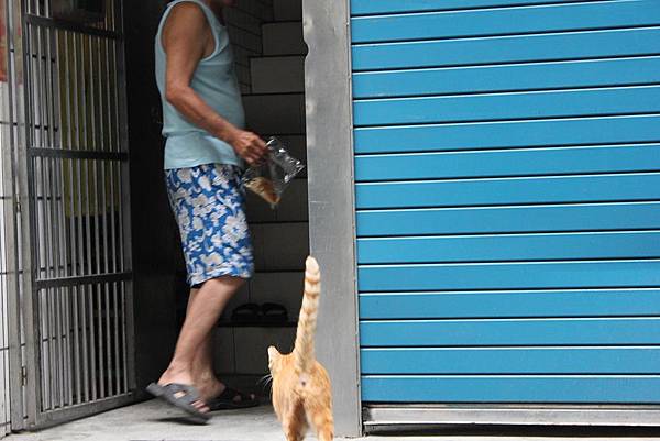 (某天我媽騎我的車子回來,長尾以為是我,從阿伯家跳到隔壁跑了出來,發現不是我又跑掉了...