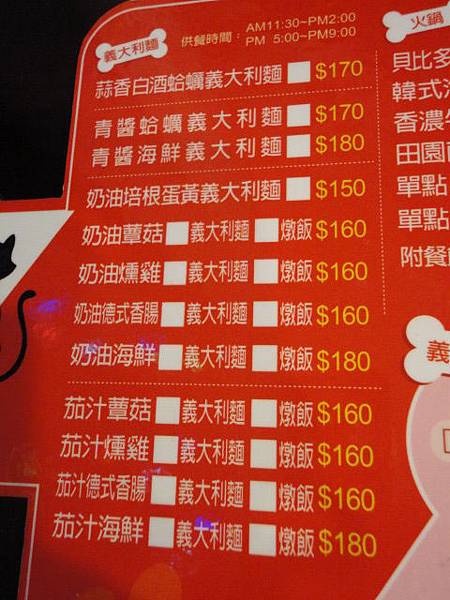 營業時間:11:30-22:00 ; 週五、六營業至AM2:30提供酒精飲料