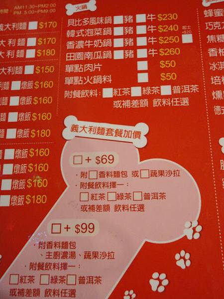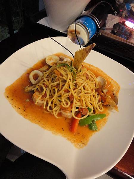 我只好快速的隨便點了 茄汁海鮮義大利麵 +69元套餐的香料麵包+補差額的奶蓋綠