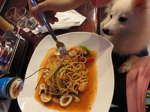 但畢竟會餐廳內會端菜走動,萬一狗狗害人家絆倒或是狗狗自己受傷就不好了
