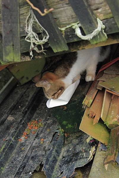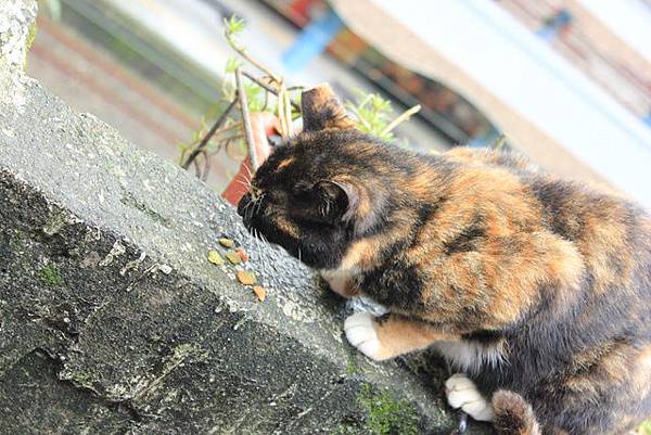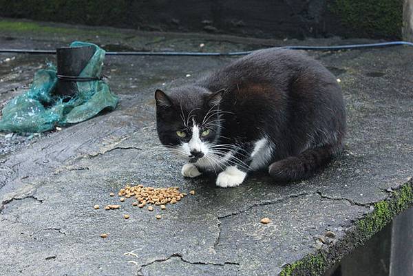 熱心的人餵貓,但有時候貓咪沒吃完,這地方又常下雨