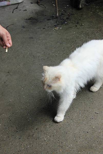 但我們要靠近給他吃他會搖著尾巴躲開...