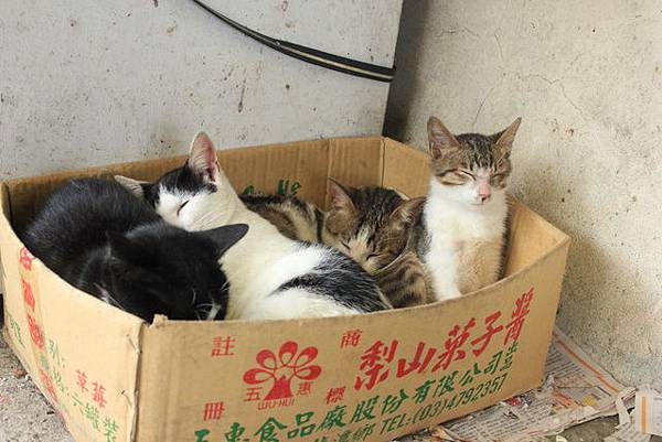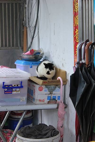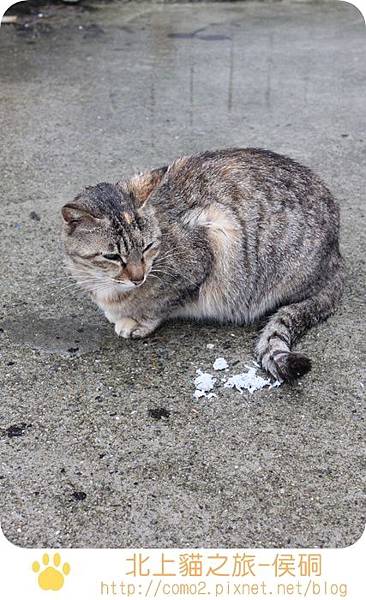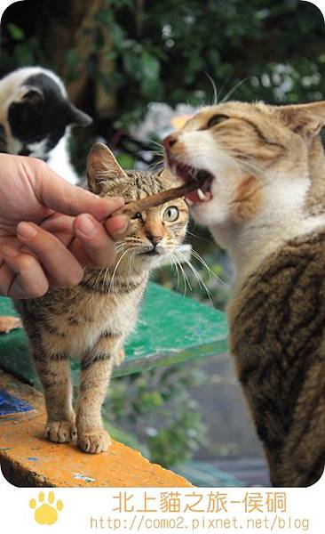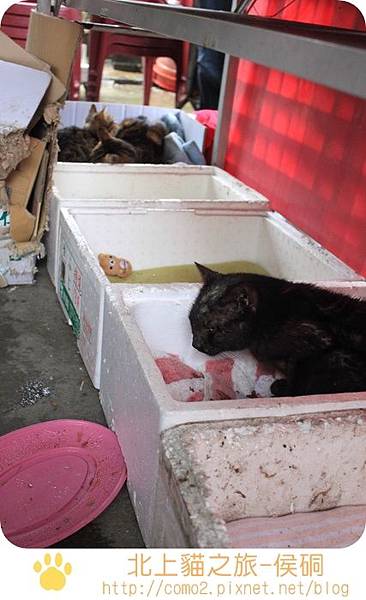 這告示板後,貓咪吃的是吻仔魚
