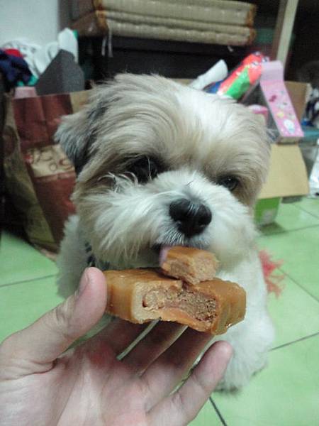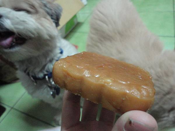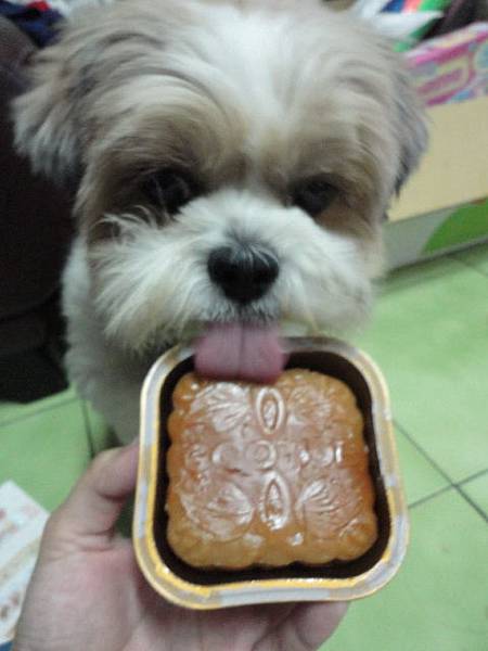 我把剩下的一點切塊月餅放在床上,轉過身回來已經全部被他吃光了