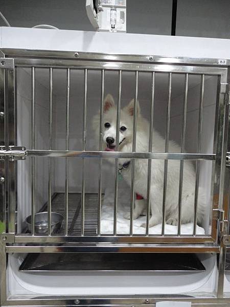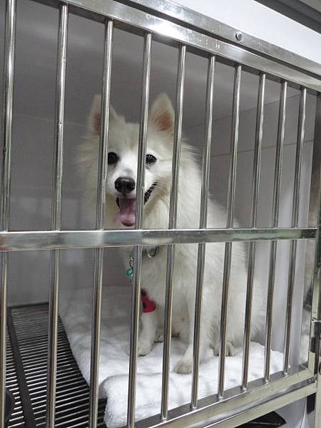回家前瓜瓜一臉疑惑為什麼我要把他放進籠子裡