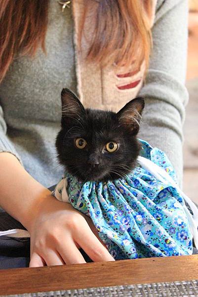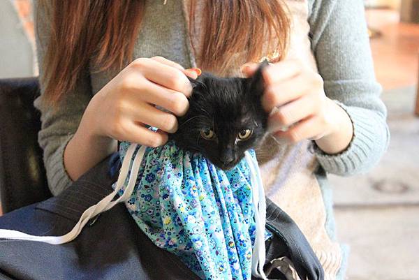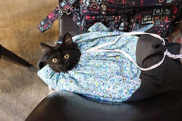 到了之後還是詢問了一下:「帶貓需要坐室外嗎?」