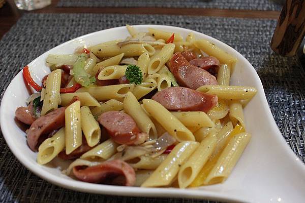 我點了 墨西哥辣椒德式香腸義大利麵 筆管麵~