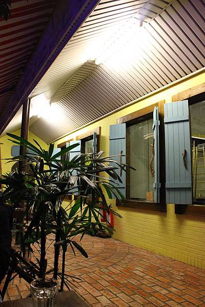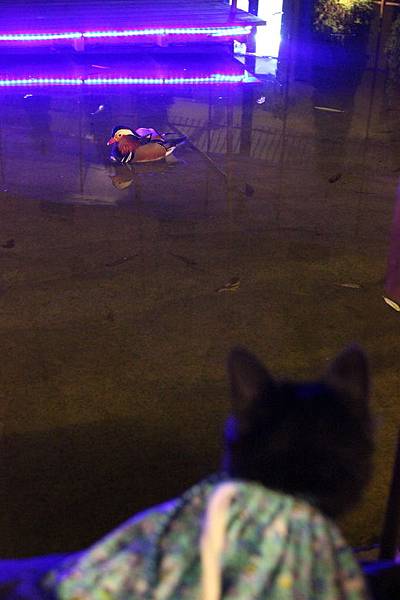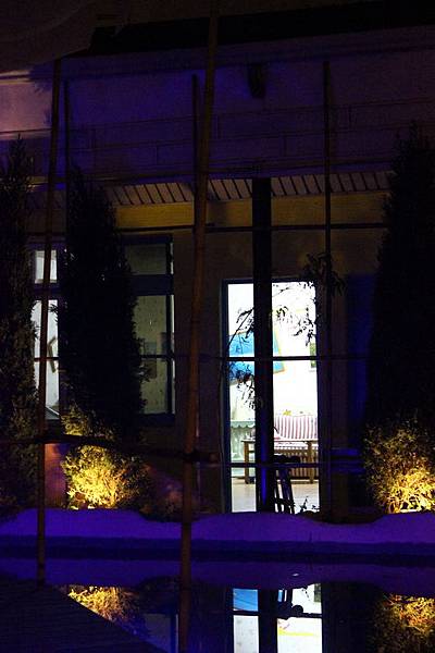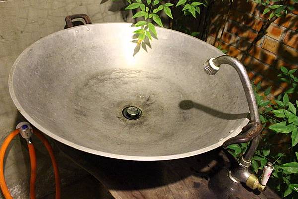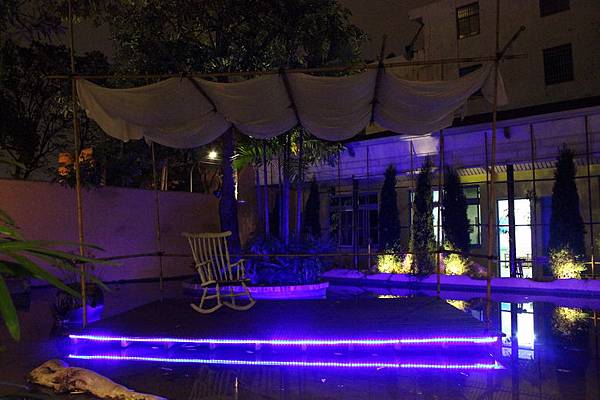 是個平面的檯子,水從台上流到種滿了蕨類植物的台下