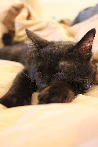 只是期間墨墨要嘛就靠著我們呼嚕嚕睡覺、要嘛就是攻擊他爸的手,抓著踢踢咬咬