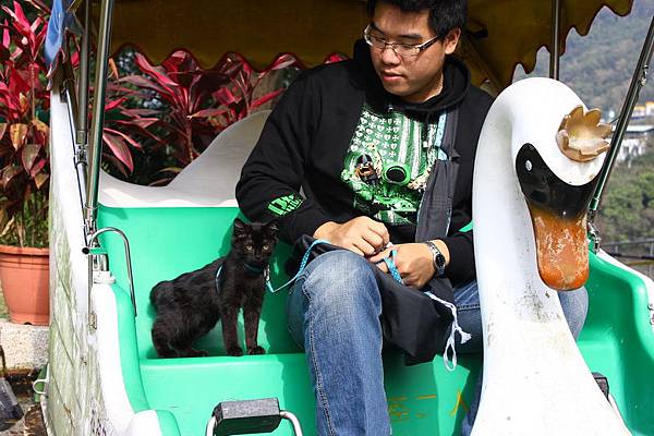 把拔在專心看地圖,墨墨被呈現奇怪姿勢的抱著XD