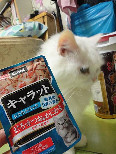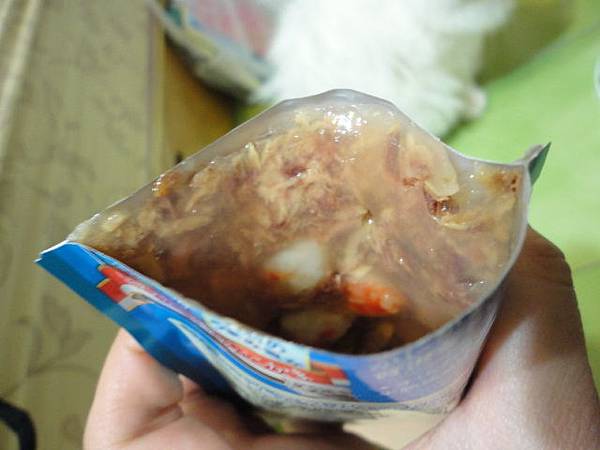 觀察:覺得這款的膠質有點太多,香味就跟一般貓罐差不多,小雪有馬上去吃,加水後也是慢慢的才吃完它~