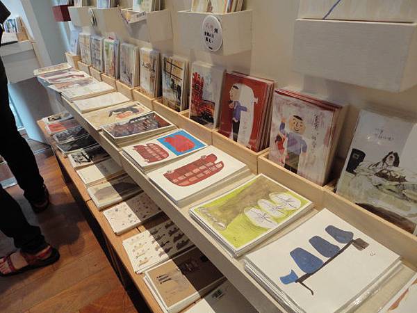 是個小小的店面,擺了各式各樣的明信片、筆記本、小畫冊、瑾倫老師出版的書...等等